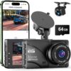 COOLCRAZY 4K Dash Cam Front and Rear with Touch Screen & STARVIS Sensor,5.8Ghz Wi-Fi,GPS,64GB Card,Night Vision Dashcam,G-Sensor,Loop Recording,App Control,24H Parking Monitor Car Camera