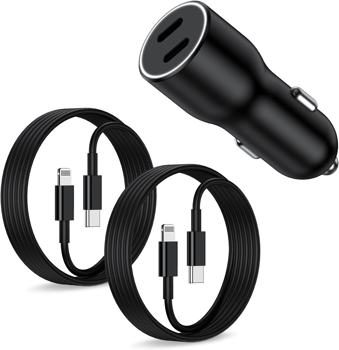 45W Dual-Port iPhone Fast Car Charger with 2Pack USB C to Lightning Cable